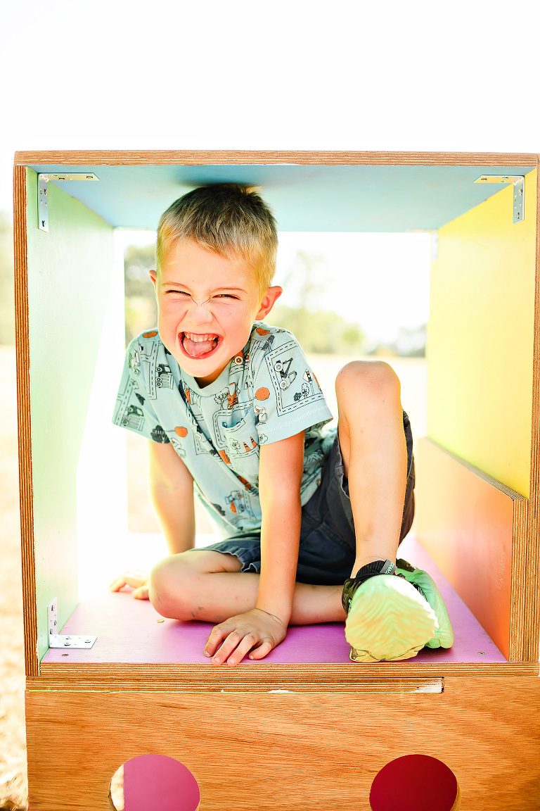 It is an installation of unique forts and climbing structures for kids to play on made by architects, builders and artists. It was such a warm day when we went, but the kids had a great time climbing, racing, building and swinging.